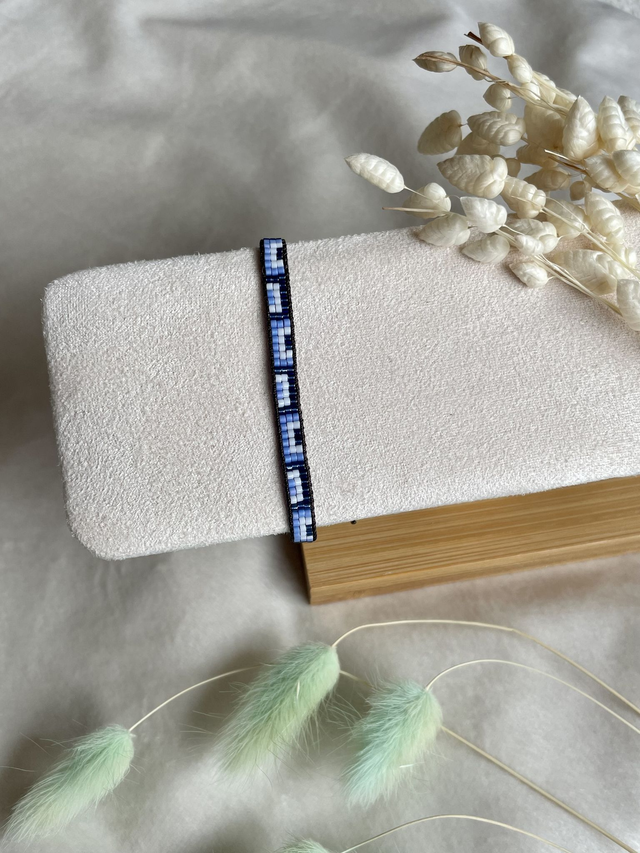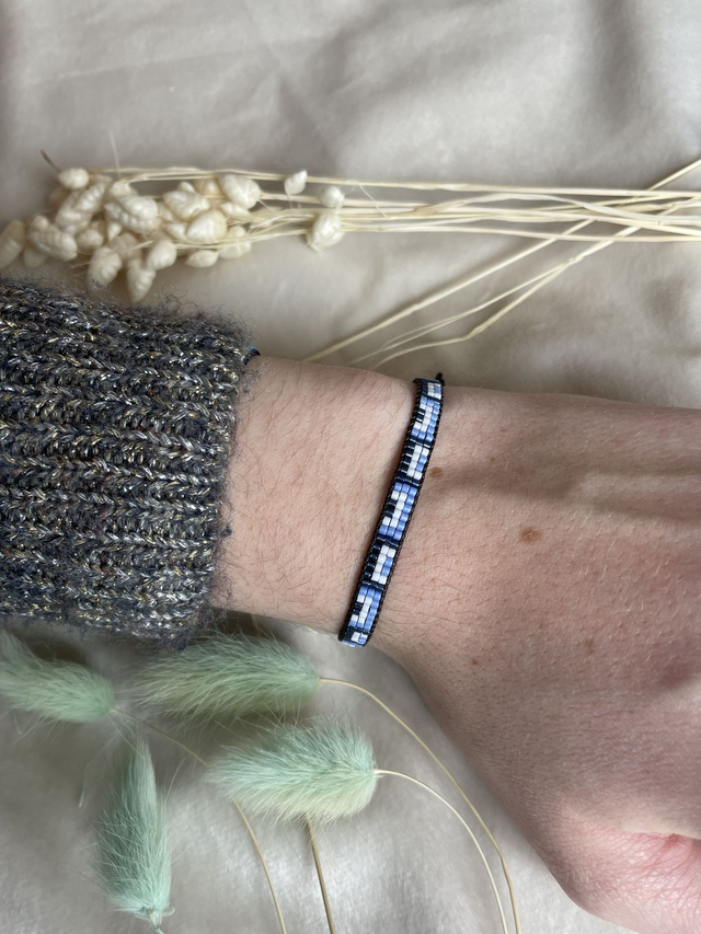 Bracelet fin et tissé à la main. Les perles que j’utilise pour réaliser ces bracelets sont des perles Miyuki. Les perles Miyuki sont des perles en verre. Ces perles sont tissées sur un fil nylon, ainsi qu'un fil c-lon et le noeud coulissant permet de régler la taille du bracelet.