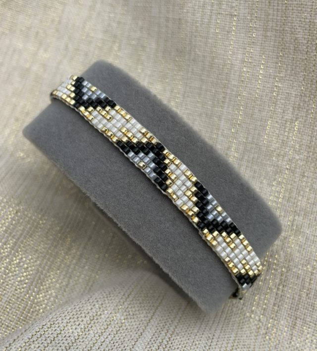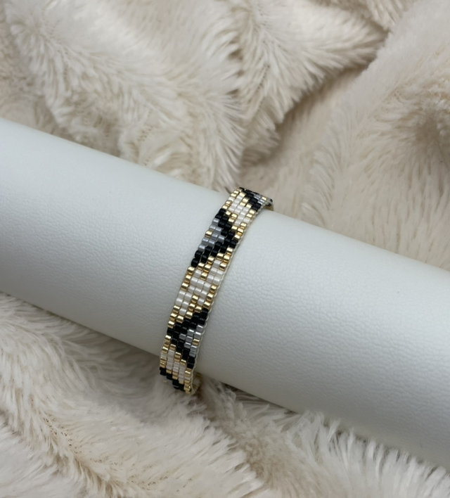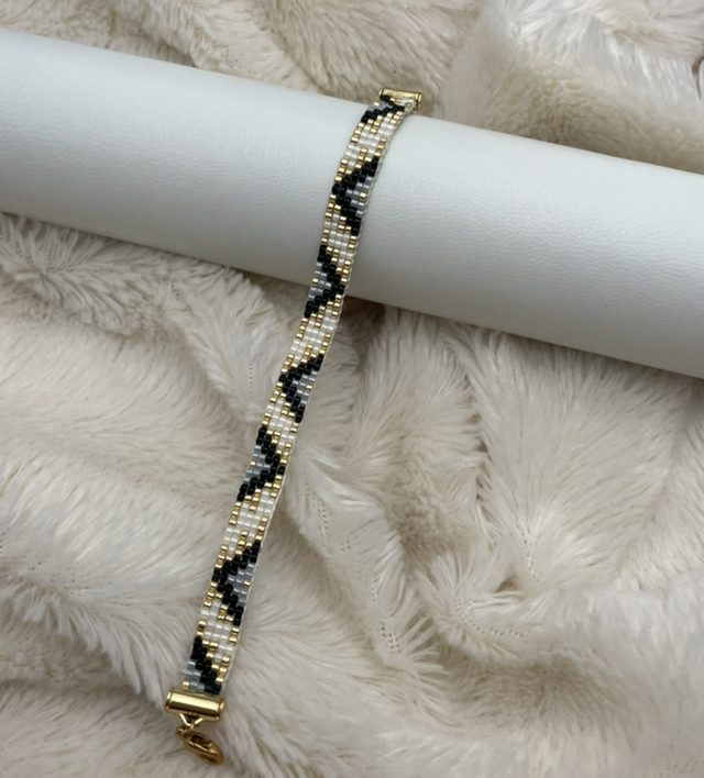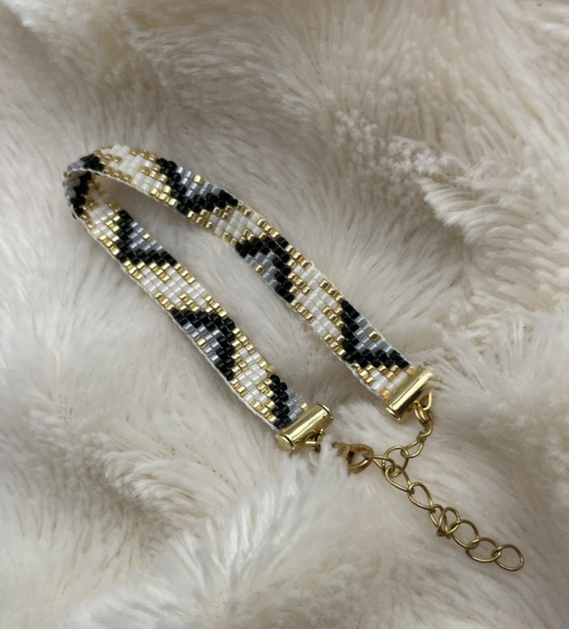 Bracelet fin, minimaliste et tissé à la main. Les perles que j’utilise pour réaliser ces bracelets sont des perles Miyuki. Les perles Miyuki sont des perles en verre. Le fermoir est en plaqué or et la chaîne d'extension en acier inoxydable ainsi que le mousqueton.